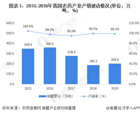 产品的产销率反映了销售对生产的实现程度,即生产与销售衔接状况,这一比率越高,说明生产符合现实需要的程度越大,反之则越小。纵观2015-2019年我国农药行业的产销率的情况,2016年我国施行更高规格的环保核查、安检行政管理,对行业产销产生了较大的影响,导致2016-2017年期间对农药行业产销率影响较大。企业对政策脱敏后,2018-2019年农药行业产销趋向稳定。随着整体企业的对环保核查、安检规范等政策,认知度的统一和稳定性加强,未来产业产销稳定将成为常态。2019年我国农药销量达到204万吨,产销率达到99.1%。
