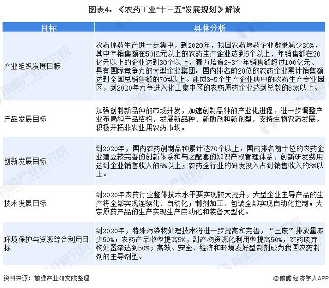为促进农药行业产业升级,工信部发布了《农药工业“十三五”发展规划》。规划提出了一系列发展目标及措施,我国农药工业将坚持走新型工业化道路,以创新发展为主题、以提质增效为中心,进一步调整产业布局和产品结构,推动技术创新和产业转型升级,减少环境污染,满足现代农业生产需求,并提高我国农药工业的国际竞争力。