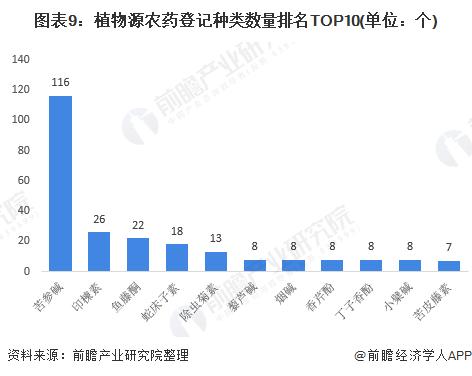 在植物源农药登记的产品中,苦参碱登记产品数量*大,达到116个;其次是印楝素的26个、鱼藤酮22个、蛇床子素18个。在生物化学农药登记的产品中,主要以天然植物生长调节剂类为主,天然植物诱抗剂类为辅。