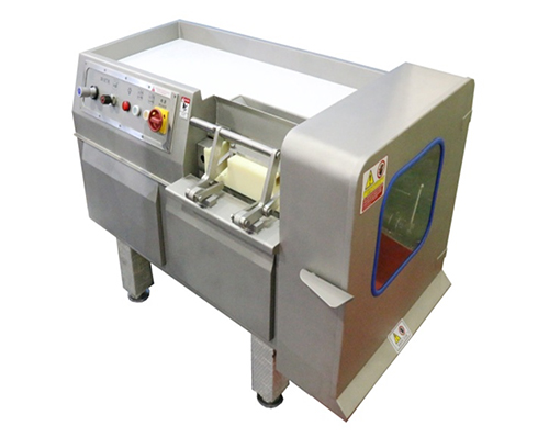 原理:低温冻肉切丁机可完成低温冻肉的切割,采用六导柱直线定位运动切割结构。低温冻肉连续切小规格片、条、丁,连续不断的放料切割。