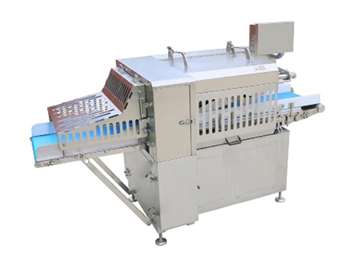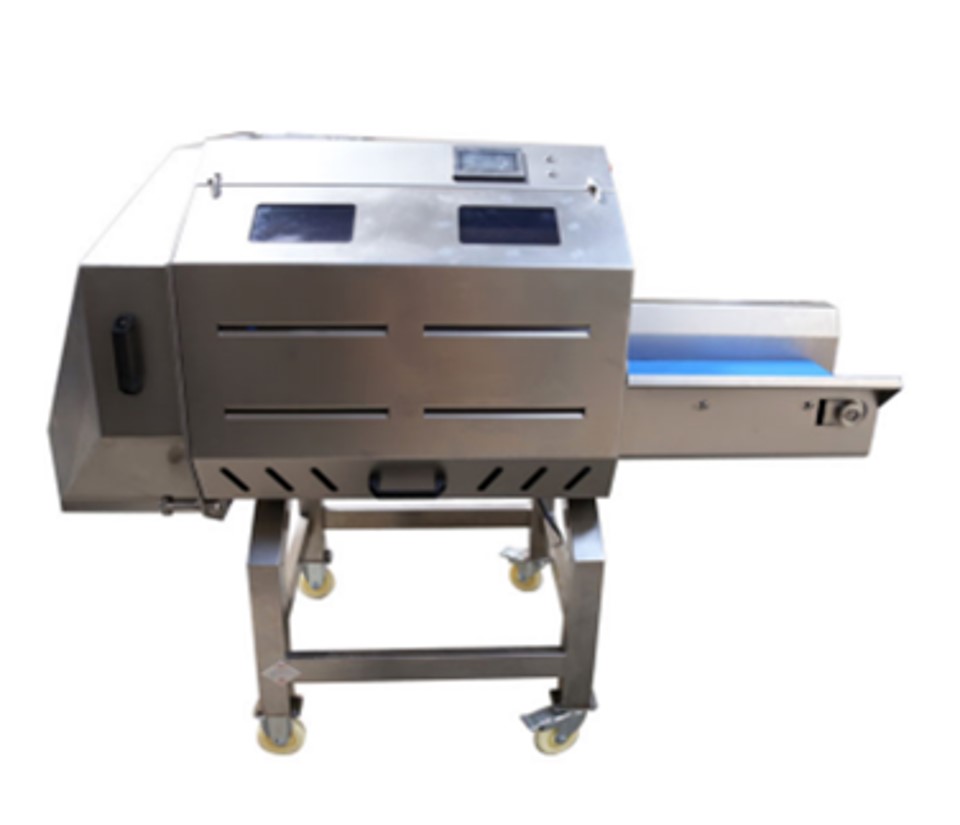 原理:横向分切机是横向切割肉类的机台,通过输送带传送,刀片横向切割,完成肉类的切片操作