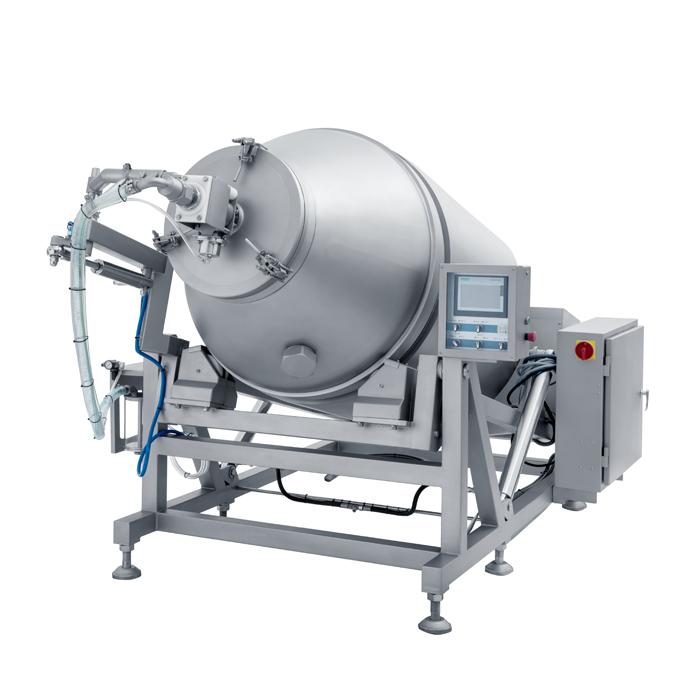 原理:真空滚揉机是食品厂家用来生产肉食制品的主要加工设备,用途是将嫩化后的原料肉通过滚揉、按压和腌制,与辅料、添加剂等在真空状态下拌合均匀