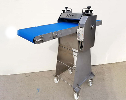 原理:熟肉切片机,可将熟肉切成片状、条状。切出来的物料摆放整齐,可以直接装入托盘。