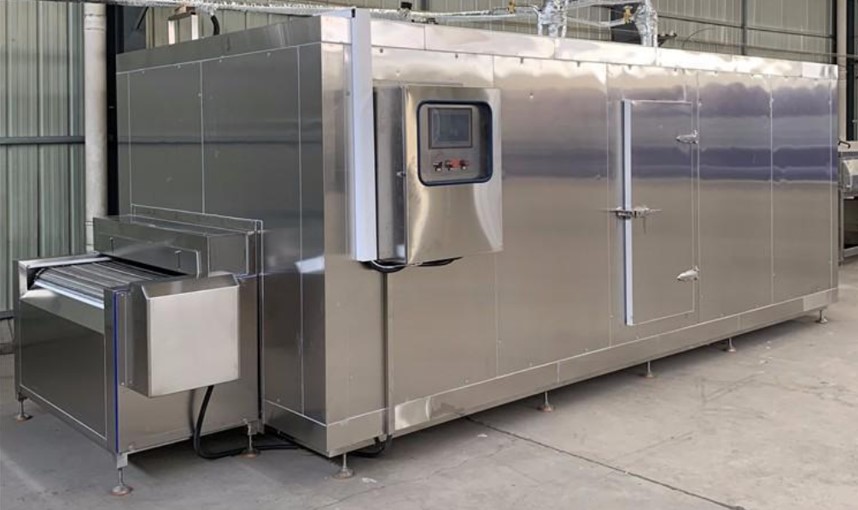 原理:液态速冻隧道是利用液体传导制冷的快速冻结设备,其原理是将被冻结物料浸泡在低温冷剂中,实现快速冻结。