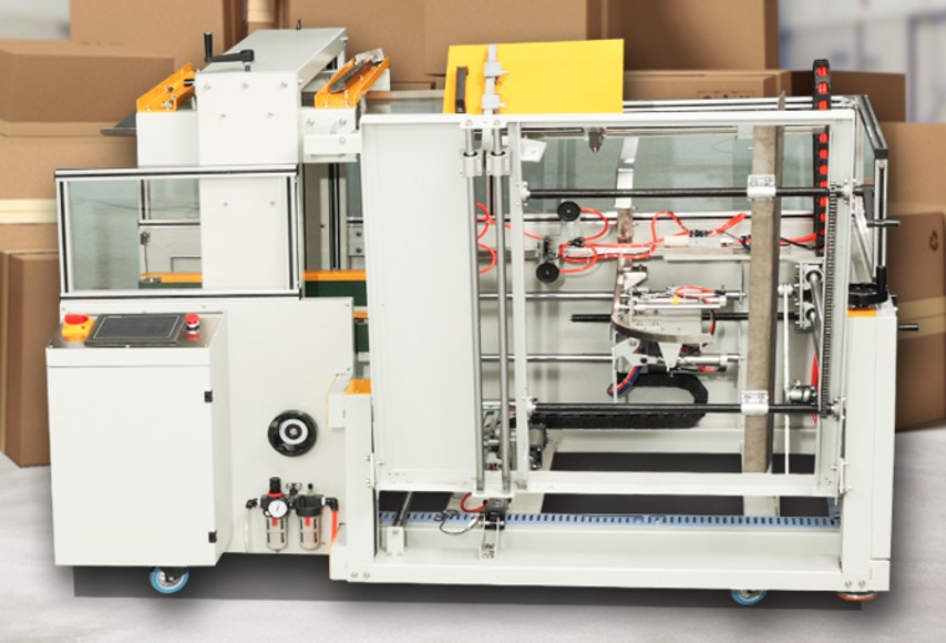 原理:自动封箱机也叫胶带封纸箱封口,经济快速、容易调整,可一次完成上、下封箱动作,也可以采用印字胶带,更可提高产品形象,是自动化包装企业的首选。适用于纸箱的封箱包装,既可单机作业,也可与流水线配套使用。