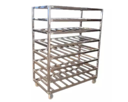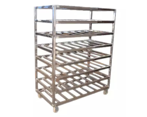原理:解冻库解冻架车用于冻肉从冻库取出,放置到解冻架车上,推入解冻库解冻。