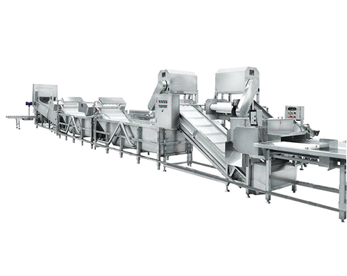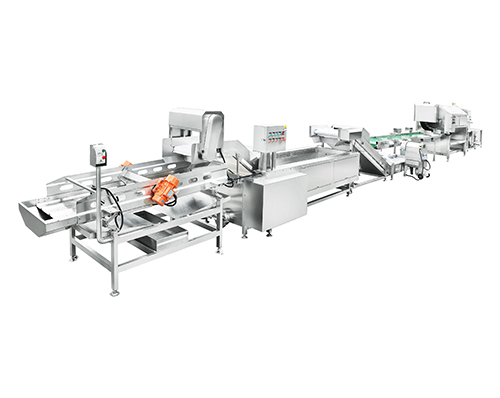 原理:本机采用日本先进技术,主要零部件均采用进口品牌元器件,全部自动一体化控制。利用根茎脱皮清洗机进行去皮清洗,检视机的整理挑拣,根茎切菜机的切配加工等生产线式配合完成,速度快,产能大,切出的蔬菜外形一致,鲜度更好,保存期更长,清洗能力大,清洗彻底且不损伤蔬菜;整条清洗线采用食品级输送网带,符合国家食品卫生标准。操作简单,去污彻底,适用性强