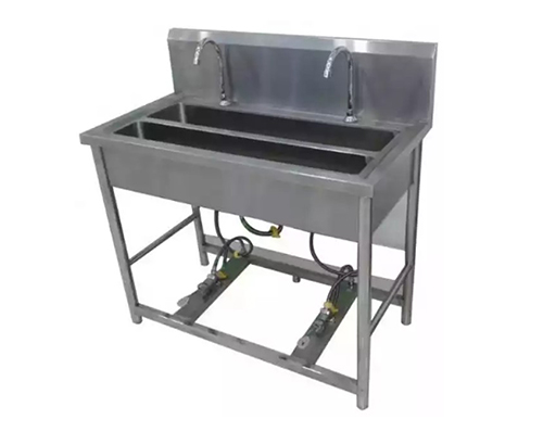 原理:脚踏式消毒洗手池,免手接触防污染,洗手消毒两用。