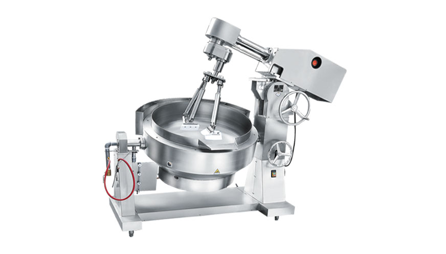 原理:由全不锈钢机架,整体加厚磨砂304不锈钢板模压成型,锅体内置蜂窝夹套换热机构,以及自动搅拌装置和下出料机构组成